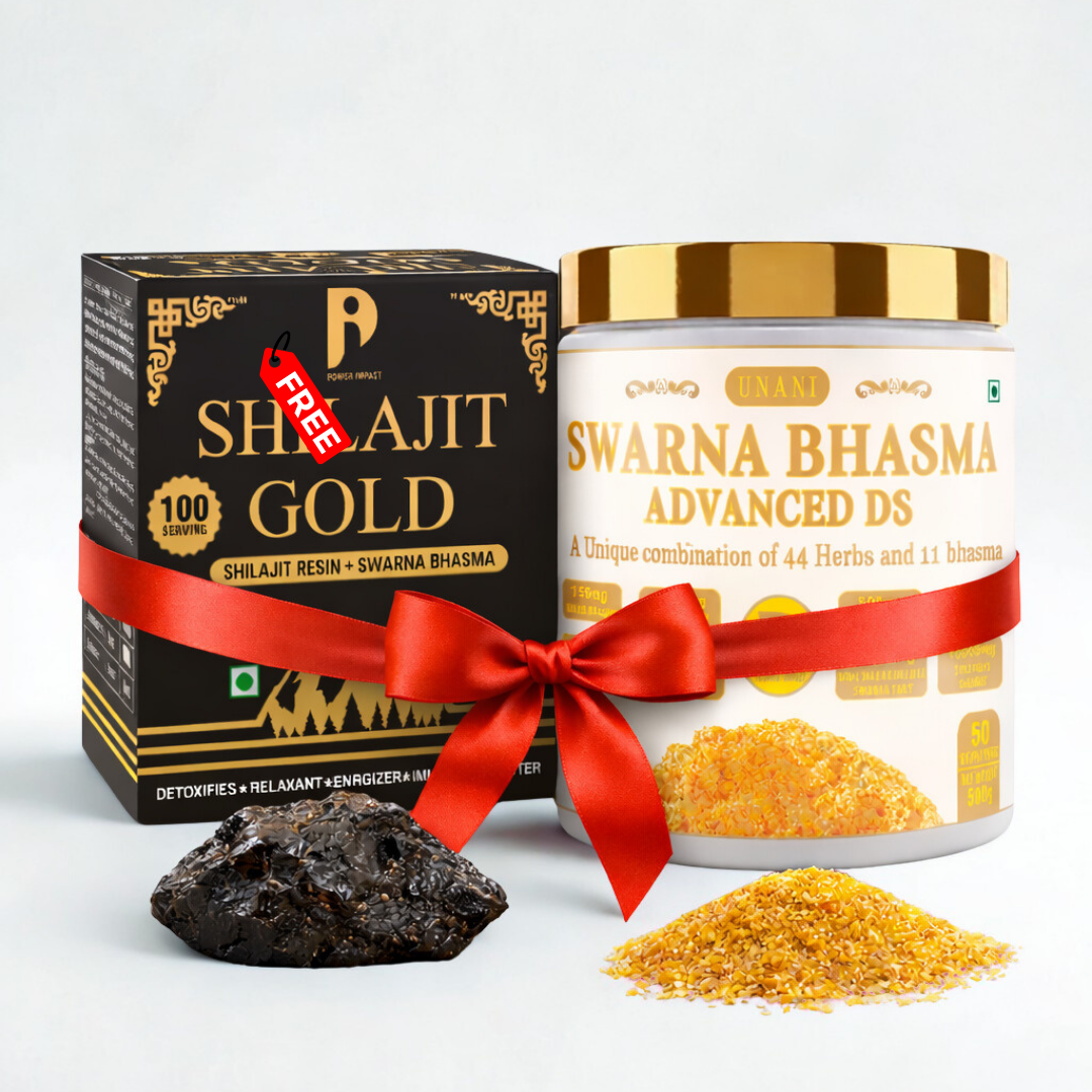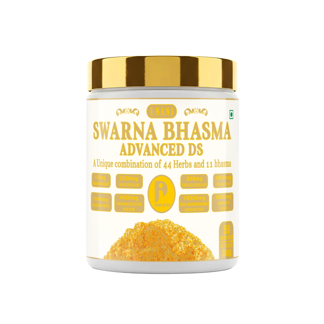 Power Impact Unani Swarna Bhasma Advanced DS is a powerful double-strength formulation crafted with a highly potent blend of 44 traditional herbs and 11 classical bhasma.